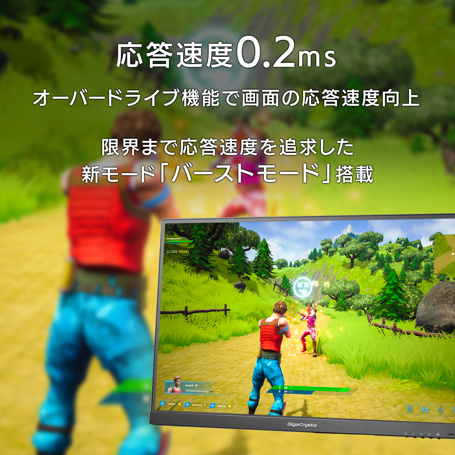 - 応答速度 0.2ms〔GTG〕(360Hz/オーバードライブレベル3/Clear AIMレベル3設定時)