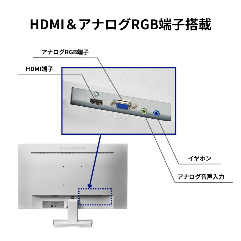 - 接続端子はHDMIの他、少し前のPCでも使えるアナログRGB