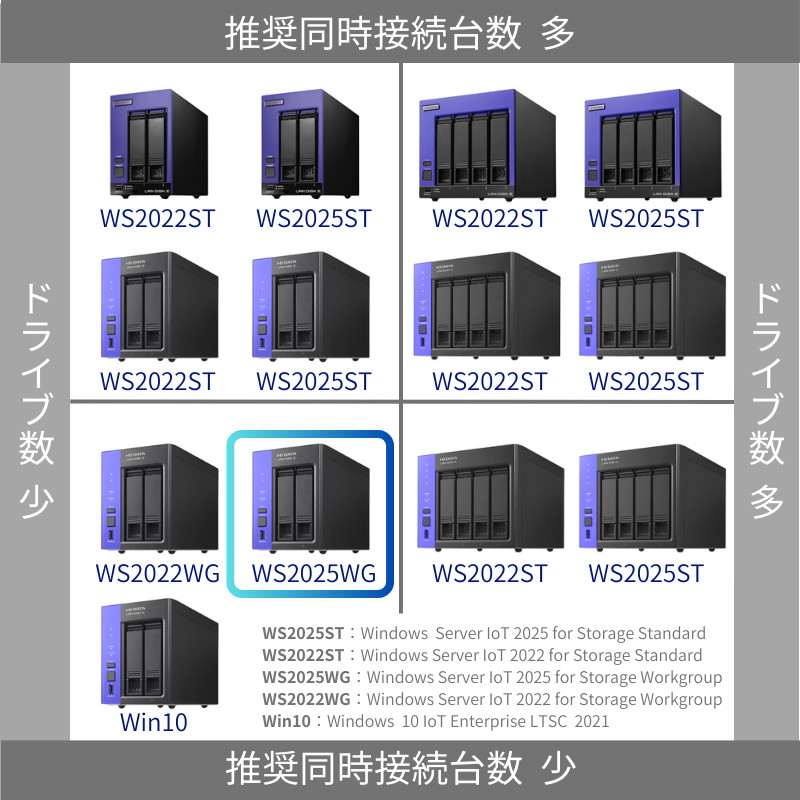 ※2026年1月現在。また本商品に搭載された「Workgroup」エディションは、OS上のユーザー利用制限数が50ですから、最大50台までのPC等を同時に接続可能です。