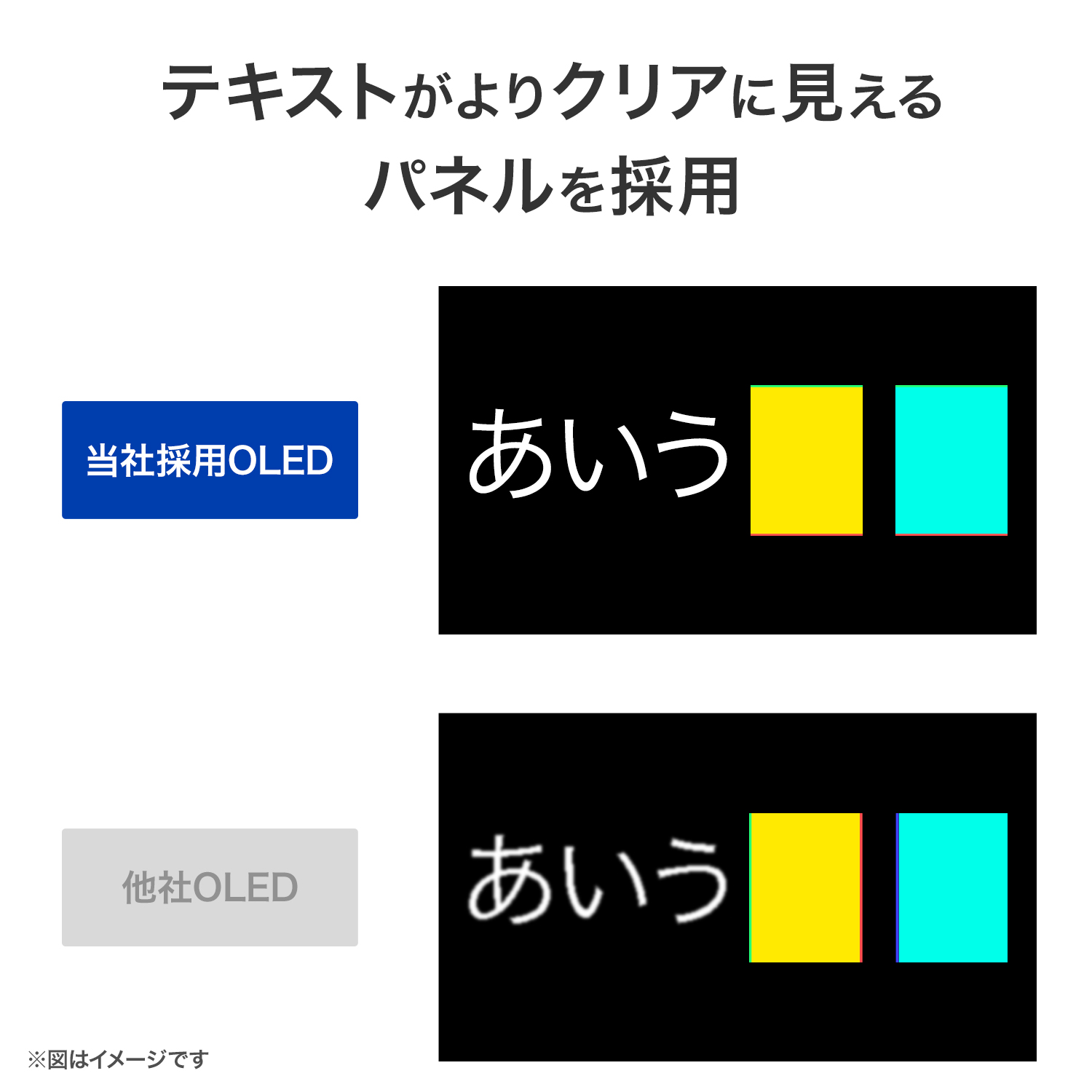 - パネルタイプ OLED(有機EL)、光沢+ARコート(反射防止)