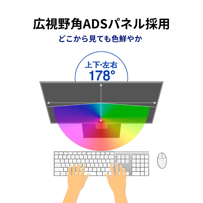 - パネルタイプ ADS(広視野角パネル)、非光沢