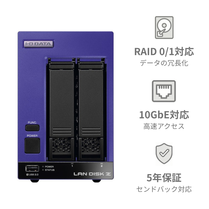 HDL2-Z22SI3B02/2TB 推奨同時接続台数500台~ 2ドライブNAS(1TB×2)